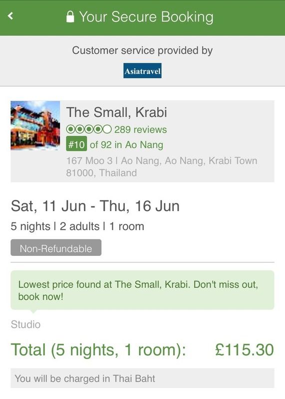 Krabi - 11th June - 16th June staying in The Small - £115.30 - £57.65pp - booked through Tripadvisor