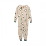 It has a cute little penguin design. Fleecy with cuffed ankles & wrists. It has front pockets and a hood. With a zip front fastening. This would suit either a boy or girl.