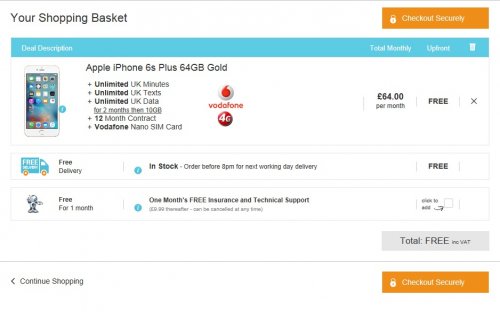 Worth adding that the network is Vodafone (as some people either like or won't like that). Also you can have the 128GB option for £74.99 upfront at the same monthly cost.