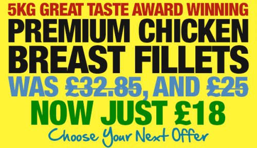 I also highly recommend their Irish Sirloin Steaks, they are grass fed and free range and the difference in taste and texture is significant. I can usually only afford to get them when they are on sale but I recently got an email from them offering 10 for £24 and no discount code which meant I could also combine it with the £19 for 5kg Chicken Breasts (which did require the code) and got it all with premium delivery for less than £50.