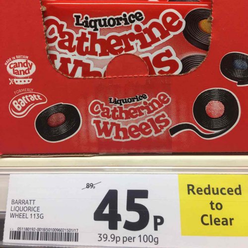 Barrett liquorice catherine wheels 45p at Tesco