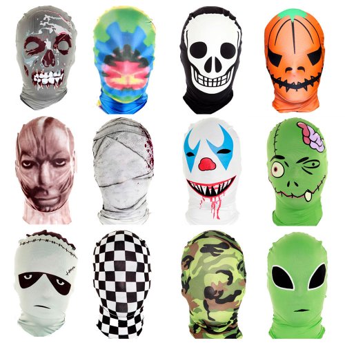 Morphmasks made by the official morphsuit makers with labels £4.95 or buy 2 save 10%. They are see through so you can see where you are going and you can drink clear fuids through them too so best stick to neat vodka and no blood this Halloween!