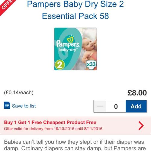 pampers buy one get one free deal £8.00 in tesco