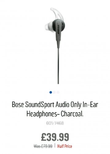 Bose Soundsport earphones at £39.99 Argos charcoal audio only