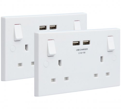99% of the "cheap" double sockets with USB are complete dross but these have some decent reviews. Just don't expect your kit to charge at the same rate as it would from a standalone charger!