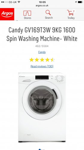 So I posted the other week about the 8kg Candy washer and now Argos have released a 9kg, 1600 spin which is the next model up for the same price, really good bargain compared to other models.