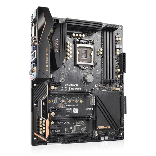 ASRock Super Alloy, Supports 6th Generation Intel Core Processors (Socket 1151), Digi Power, 10 Power Phase Design, Supports Dual Channel DDR4 3200+(OC), 3 PCIe 3.0 x16, 3 PCIe 3.0 x1, NVIDIA Quad SLI, AMD 3-Way CrossFireX, Graphics Output Options: DVI-D, HDMI, DisplayPort 1.2, Supports Triple Monitor, 7.1 CH HD Audio (Realtek ALC1150 Audio Codec), Supports Purity Sound 3 & DTS Connect, 3 SATA Express, 6 SATA3, 1 Ultra M.2 (PCIe Gen3 x4 & SATA3), 2 USB 3.1 (1 Type-C & 1 Type-A), 8 USB 3.0 (2 Front, 6 Rear), Supports Full Spike Protection, ASRock Live Update & APP Shop.