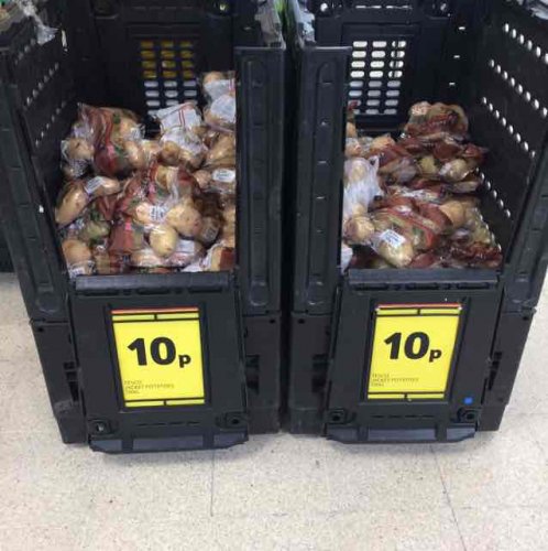 Baking potatoes pack or 4 only 10p Tesco in store, found in Tesco extra Bedworth.expiry date on the pack is 17/12