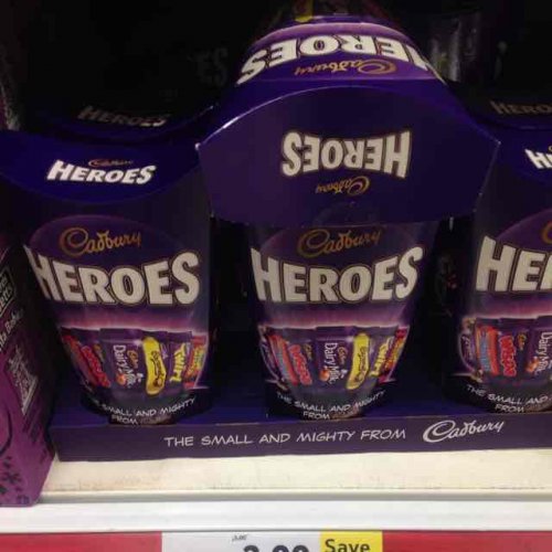 Cadburys Heroes 323g carton was £3 now £2.00 @ Tesco (cheaper than tubs per 100g)
