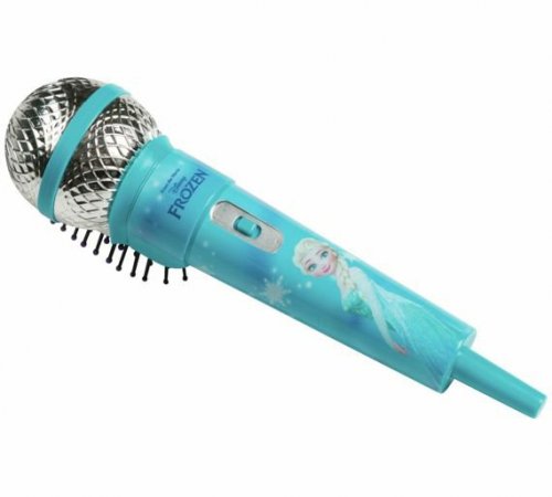 Hairbrush in a shape of a microphone with disney frozen print of elsa and anna.