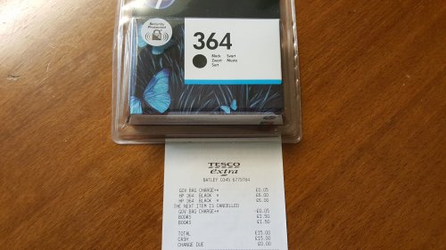 HP 364 Black cartridges are "only" £6 at Tesco at the moment. Also on the grocery website.
