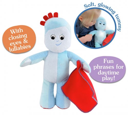 An adorable, super-soft toy that will become the perfect daytime and night time friend for your little one. Lie Igglepiggle down and his eyes will gently close as he goes to sleep and he will play a sleepy phrase. Press his right hand for soothing lullabies and a soft glowing light will appear in his body. Sit him back up to open his eyes and to hear daytime phrases. Press Igglepiggle's hand for extra sounds and engaging stories.