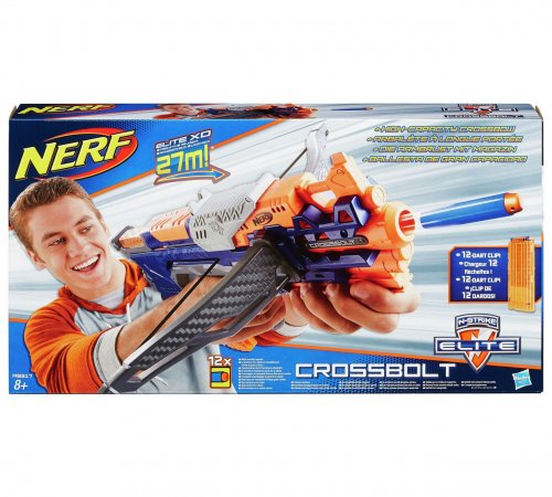Make your mission count with the clip-fed bow action of the crossbolt blaster! Load up the 12-dart clip with the included N-Strike Elite darts and attach it to the blaster. Get ready to bring down targets up to 27m away.