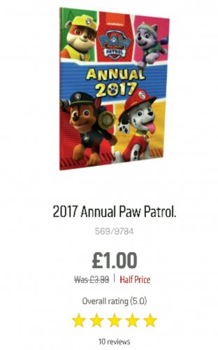 Paw Patrol 2017 annual £1.00 in Argos