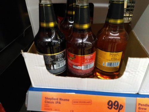 The cheap ones at lidl have Brewers Choice on the neck and seem to me to be poor in comparison to others like Bishops Finger and IPA. As mentioned above the ones in the 4 for £5 at Asda are good value and the offer includes lots of other beers too-Butty Bach and Wye valley HPA are 2 of my favourites at the moment