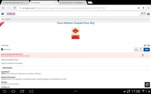 Tesco Chapatti Flour for £1.75 For 5Kg. You End up Saving Money £1.25 As It Was £3.