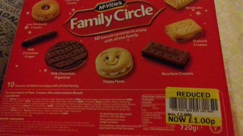 Big 720g box of family circuits are reduced to clear £1 at tesco copdock ipswich. Loads on a trolley near fizzy drinks.