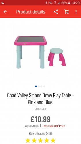 Chad valley sit and draw play table was £29.99 now £10.99 at argos
