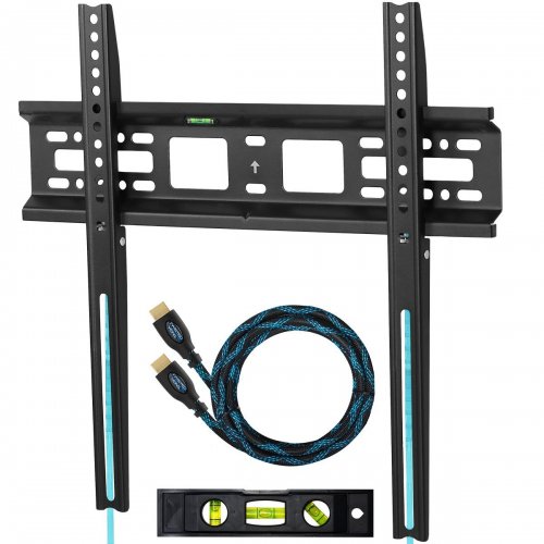 The APFMSB is Cheetah's Ultra low profile mount. With a profile of 1" from the wall, it's perfect for a clean install where the mount is completely hidden and the TV looks as flush as possible, leaving just enough room for cables to fit behind the TV. The purchase also includes a Twisted Veins 10' Braided HDMI Cable and 6" 3-Axis Magnetic Bubble Level.