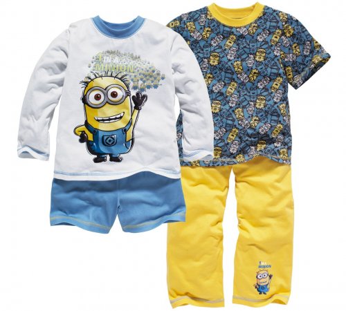 100% cotton Despicable me pyjamas half price now £7.49 for 2 pairs. One set t shirt and shorts the other set long sleeved top and full length bottoms. Available in ages