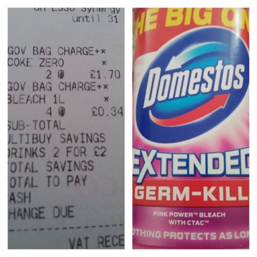 domestos bleach 1 litre. 34p. tesco express - Taunton