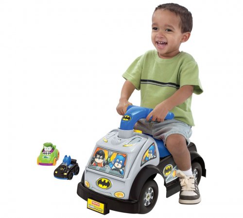 Super cute little ride on that doubles as a raceway complete with the Batmobile and Joker wheelies now less than half price at £23.99 reduced from £49.99. Also has Batman phrases and sound effects and under seat storage for the vehicles so they don't get lost. Great reviews - 4.8 out of 5 and also lots of stock as it's available for home delivery if you need to.
