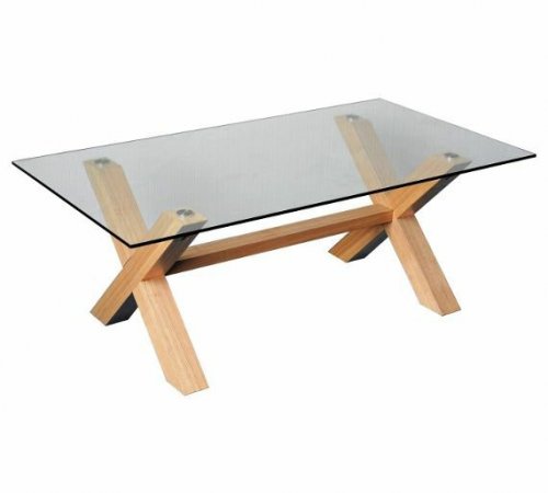 The Abbotsley coffee table has solid oak legs with a sturdy criss cross design. It's finished with a pristine glass top with smooth bevelled edges.
