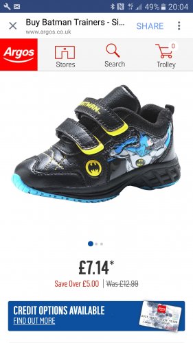 Kids Batman trainers available in kids sizes 7 to 11 at time of posting. I've just reserved a pair size 11 to be at my local store first thing tomorrow... bargain