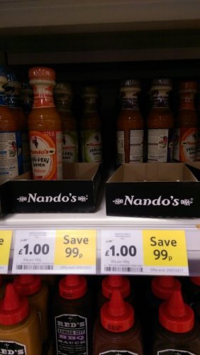 As per title. 125g bottles of Nandos Sauces £1.00 till 29/01/17