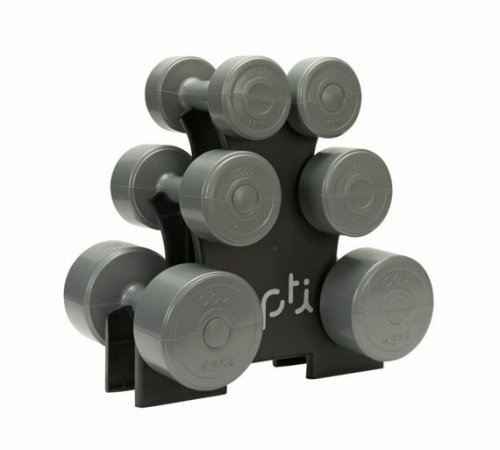 Perfect for beginners and those looking to save a little bit of space. This Opti 15.8kg vinyl dumbbell tree set gives you 2 x 1.1kg, 2 x 2.3kg and 2 x 4.5kg dumbbells and a convenient place to put them as well. Easy to pick up and put back on too.