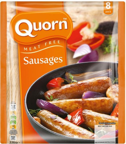"Quorn Meat Free Sausages " aka : man made fungus , which can cause reaction in some people , including death.