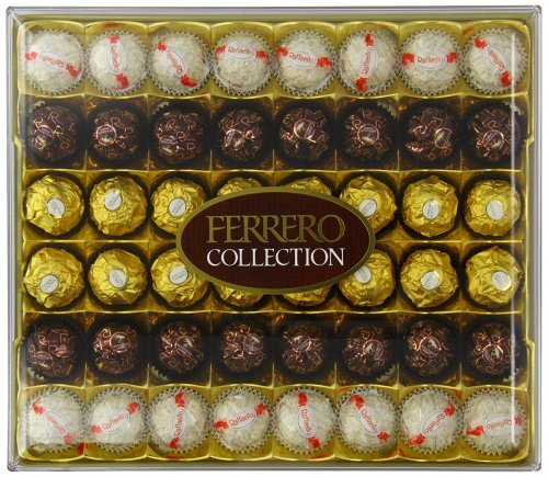 -Ferrero Rocher - A whole hazelnut surrounded by delicious layers of crispy wafer, a creamy filling, smooth milk chocolate and finely chopped hazelnut pieces