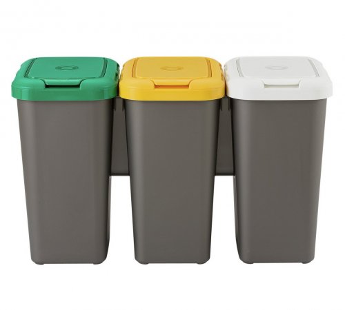 It's easy to do your bit for the environment with these 3 recycle bins. Do away with the plastic bags or piling things up to take them out to the wheelie bin - this set helps you organise your rubbish in no time with a different colour for each type of waste. Each compartment has a 25L capacity and an easy lift top lid.