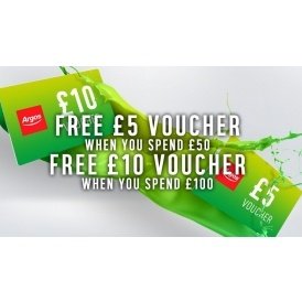 Heads up from Wednesday 12th Apr * £5.00 Argos voucher when you spend £50 * £10 Argos voucher when you spend £100