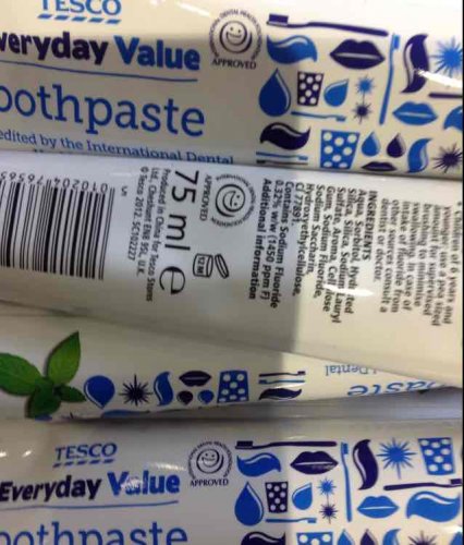 As you can see from ingredients the Tesco Value toothpaste contains 1450 ppm F. Some adults require a higher level of fluoride on advise from dentist. More info on NHS website. I'm no fan of Tesco but keen to save anyone some cash.
