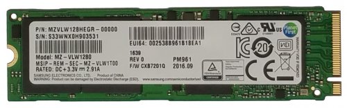1 x Samsung PM961 Polaris 128GB M.2 NGFF PCIe Gen3 x4, NVME Solid state drive SSD, OEM (2280) (MZVLW128HEGR-00000)