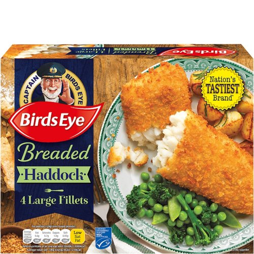 Birds Eye Breaded Haddock (54%) Fillets (4 = 480g) was £4.00 now 3 Packs for £6.00 (12 pieces of Haddock approximately 730g = 26 oz)