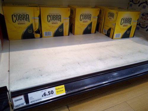 Cobra beer, 12 for 6.50. Clearance @ Tesco (Ricoh Coventry)