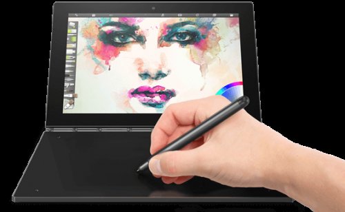 Lenovo Yoga Book. Productivity On-The-Go. Amazing 2-in-1 Tablet for Ultimate Productivity. This is one Book you can’t put down… and you don’t need to! This tablet is just 9.6 mm thick and has a brilliant 10.1" IPS FHD display, but is also an amazing 2-in-1 productivity powerhouse. Equipped with a Halo Keyboard and Real Pen input device, you can use Lenovo Yoga Book to type, take notes, browse the web, and even draw. The productivity-optimized Book UI lets you open and work on multiple apps at once, stay totally organized, and go all-day with 15 hours of battery life.