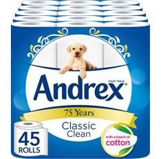 ok i know a lot of andrex only a 2 pounds voucher here apply the 2 pounds voucher and maximum subscribe and save discount kerching 12.87 delivered currently 4pounds for 9 rolls on my supermarket so equates to 20pounds for 45 rolls so a great saving here