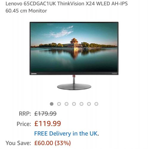 Lenovo x24 IPS £119.99 @ Amazon (Sold by Laptop Outlet UK and Fulfilled by Amazon).