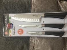 Russell Hobbs 3 piece stainless steel knife set £3.99 in B&M.. rrp £10.. not used them yet but they look really good strong knives.. the biggest one is huge) includes Santoku knife Utility knife paring knife WITH A 12 MONTH GUARANTEE :smiley: (also had a 5 piece set for about £5.99 the link for that is Link to 5piece set