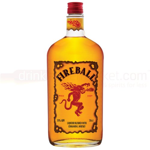 Fireball is a liqueur blended with Canadian whisky and natural cinnamon flavours. It's a fiery but smooth drink best described by the makers themselves 'Just imagine what it feels like to stand face-to-face with a fire-breathing dragon who just ate a whisky barrel full of spicy cinnamon.' Can be consumed straight, on the rocks, or to add character to a mixed drink.
