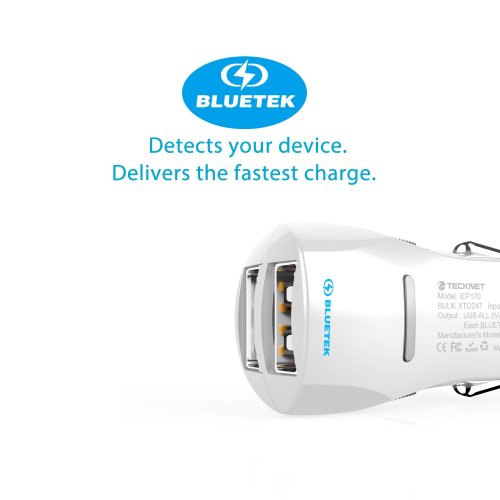 Technical Specifications Features cutting-edge BLUETEK Technology Charge 2 USB devices at the same time Power up to 2.4A each USB output Auto-Detect for iOS or Android devices LED indicator Built-in short circuit protection and over current protection