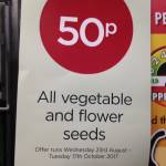 All vegetable and flower seeds 50p at Wyevale.