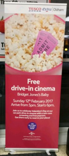 The Tesco Extra store in Oldham, Huddersfield Rd will be giving its film-loving customers a Valentine’s treat as it turns its car park into an American-styled drive-in movie to screen Bridget Jones’s Baby.